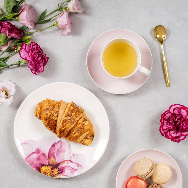 K Valentínu neodmysliteľne patria kvetiny, či už vo váze, alebo ako darček. Tradičné sú predovšetkým ruže všetkých farieb. Týmto romantickým kvetinovým motívom sa inšpirovala aj kolekcia Rose Garden od Villeroy & Boch. Celú kolekciu doprevádza akvarelový motív s jemnými detailmi. Nežné tóny ružové sú navyše voľbou pre valentínsku večeru, ale využijete ich aj pri každodennom stolovaní.